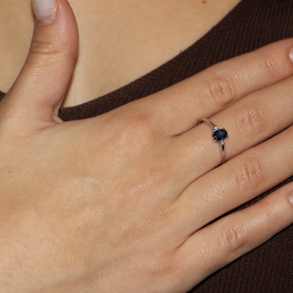 - Completamento del look: per un insieme armonioso, si suggerisce l’abbinamento con orecchini a punto luce o un bracciale sottile in acciaio, lasciando che l’anello rimanga il punto focale.